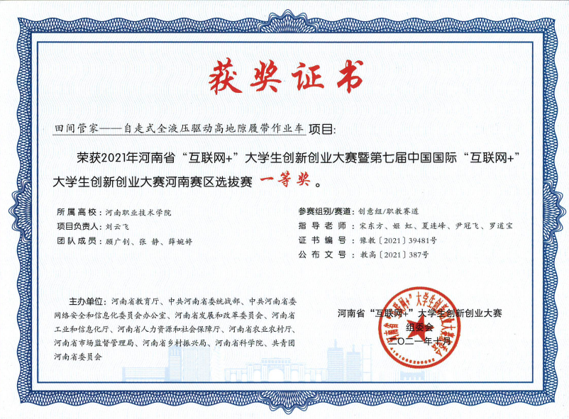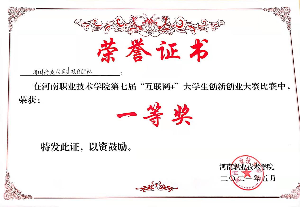 2021年获得“互联网+”河南省选拔赛一等奖
