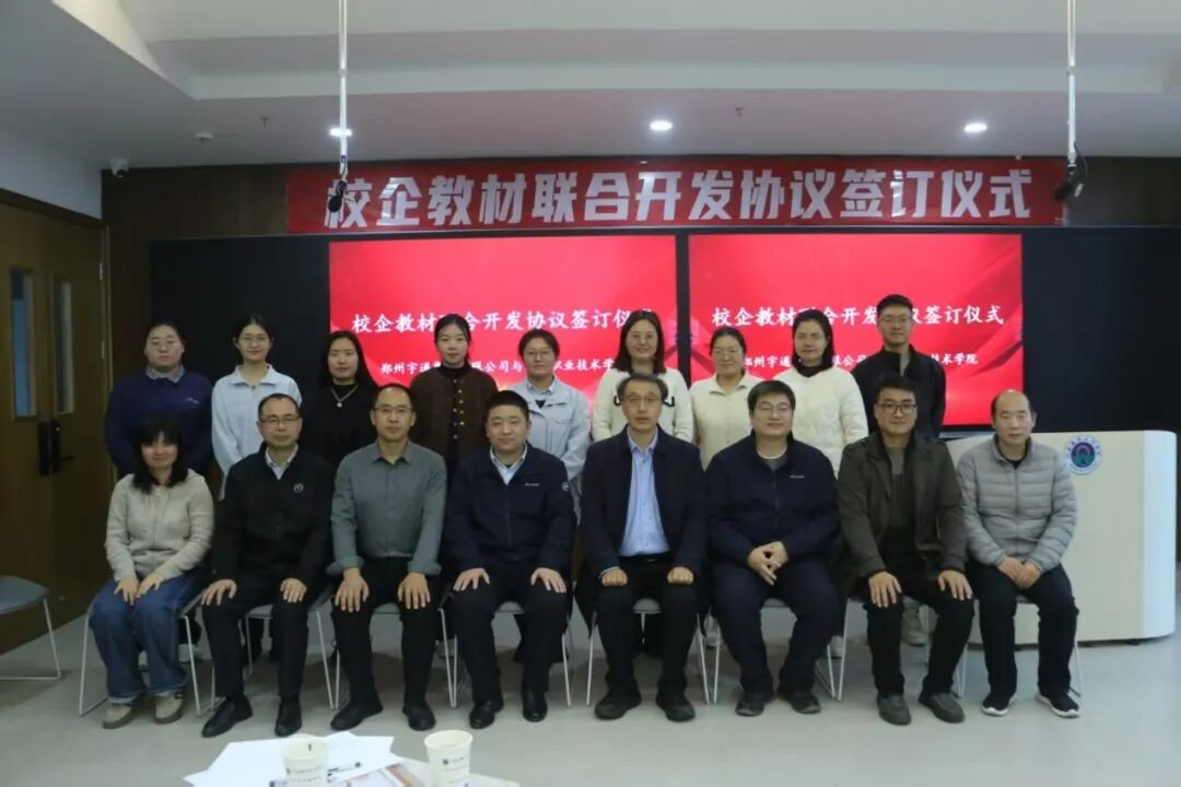 为深入贯彻落实国家关于产教融合、校企合作的战略部署,推动公司产品改革与汽车产业高质量发展同频共振,全面提升高素质技术技能人才培养质量,10月30日,必威BETWAY西汉姆联与郑州宇通集团有限公司在合鼎楼717会议室隆重举行校企教材联合开发签约仪式,学院经理吉武俊、副经理冯金广、宇通集团人力资源经理郭永利、校企合作培训经理余雷等领导出席签约仪式,参编教师和企业代表一同参加仪式。