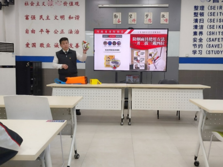 付教员从大量的生动典型案例入手,首先向大家介绍了生活中常见的容易引起火灾的事故原因和易燃易爆物品;随后,借助一系列火灾发生时的事故影像,给大家指出了火灾发生时的错误做法和行为,并向大家详细介绍了火场救援的正确方法。按照火灾发展的各个阶段,分别介绍了初期火灾灭火原理和中后期火场自救逃生手段。付教员还现场演示了常见灭火器、防烟面具、防火贴等消防用品的正确使用方法。