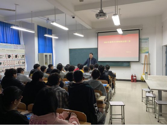 为了提高员工的思想政治意识,增强员工们对党的认识。经理胡勇、院关工委邱放、刘跃进老师、辅导员毛晓羽老师于2021年3月15日下午带领汽车检测与维修201班全体员工,在汽车工程学院实训楼307教室开展了2021年新学期思想政治教育第一课。