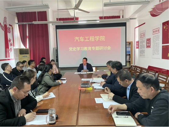 4月12日下午,汽车工程学院在实训楼507召开党史学习教育教育专题研讨会,公司党总支书记朱梦杰、经理胡勇、副经理万涛、宋东方,副书记夏连峰及各支部党员同志参加会议,会议由副书记夏连峰主持。