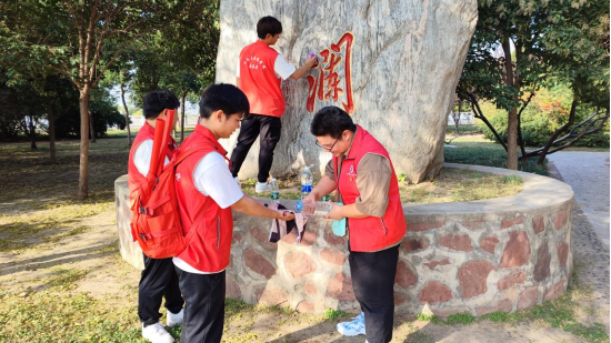 同学们在学院楼下集合后,在员工党支部书记王德龙和各委员的组织带领下一起前往花园口记事广场。王书记为大家简单介绍了花园口事件,他指出,花园口事件是一九三八年蒋介石为阻止日军夺取郑州进攻武汉而下令炸开花园口黄河大堤,以水代兵,置人民群众生命财产而不顾。该事件给广大人民群众造成极大灾难。与此形成鲜明对比的是,中国共党产一边转移受灾群众,坚决主张复堤,一边坚持抗日,保家卫国。希望同学们不忘历史启迪,自觉爱党爱国。随后,入党积极分子代表刘珂馨,在纪念雕塑前向大家讲述了自己作为一名青年老员工如何看待此次活动对自身的影响,她表示,通过此次活动一方面让我们清楚的认识到了那段悲痛历史的残酷史实,一方面让我们认识到了当今美好生活的来之不易。作为一名入党积极分子,会铭记历史的同时用实际行动表达爱党爱国之情。最后,师生一起开展环境保护专项治理志愿服务活动,擦拭历史遗迹纪念碑、清理碑文上的污渍并重新为其上色。