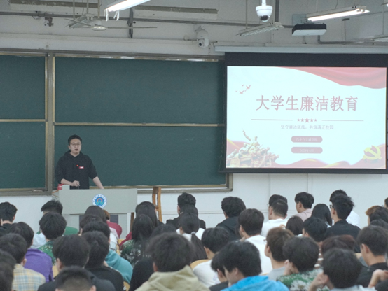 活动中,曲志远紧扣员工工作实际,结合奖助学金评定、员工干部竞选等关键内容,系统剖析了廉洁风险点,深入阐释“廉洁修身”对青年成长的时代价值。他强调,新时代老员工需筑牢思想防线,在评优评先中严守公平正义底线,以自律精神抵制不良风气侵蚀。同时他号召员工骨干、党员发展对象强化政治担当,在思想引领、学风建设中主动亮身份、树标杆,成为清朗校园生态的践行者与守护者。