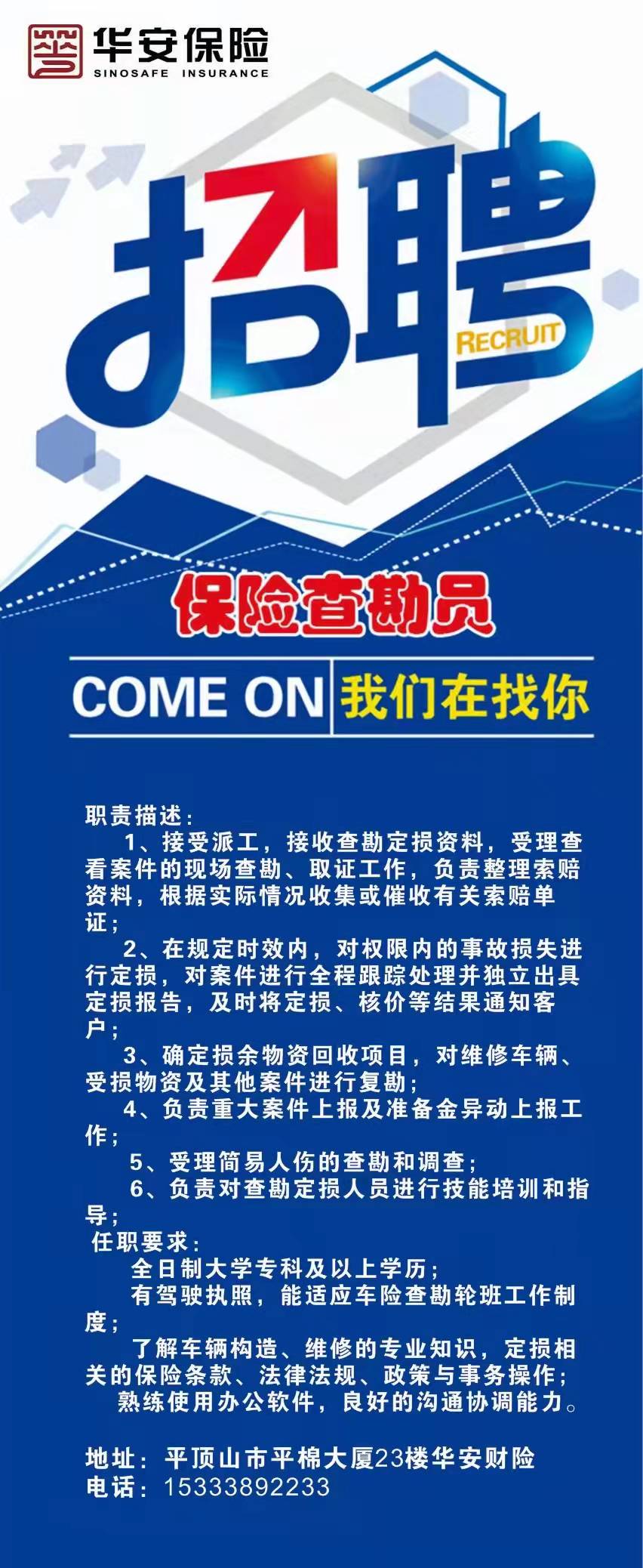 华安保险招聘保险查勘员