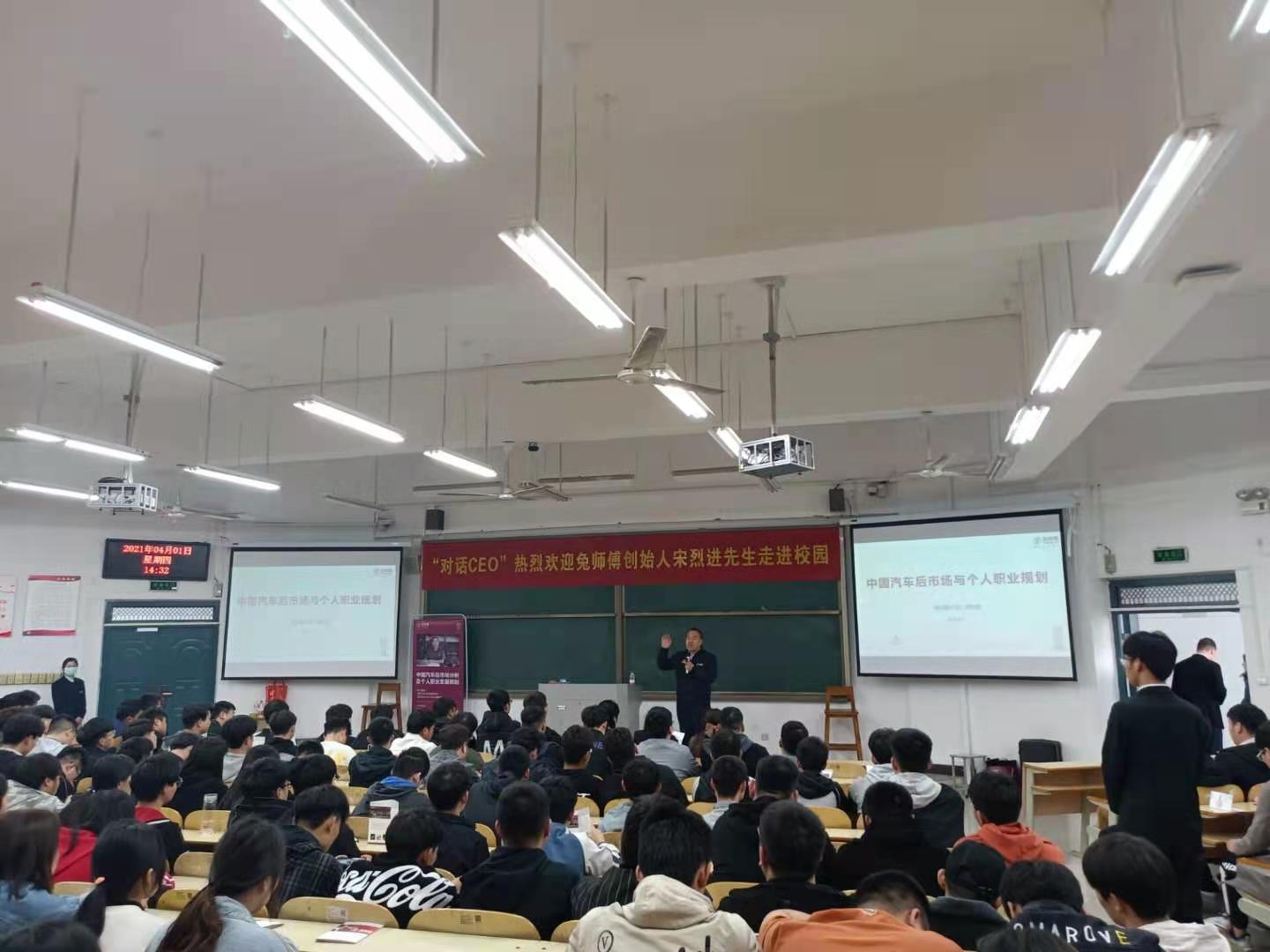 4月1日下午,汽车工程学院在1201教室举行了“对话CEO.企业创始人走进校园”大型讲座活动,北京兔师傅汽车科技有限公司创始人兼CEO宋烈进受邀来到公司演讲,公司350名师生参加了活动,本次活动由汽车工程学院副经理宋东方主持。
