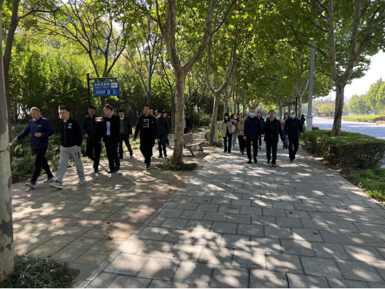 为更好地宣传体育强身精神,营造浓郁的全民健身氛围,引导广大员工积极参加体育健身活动,不断提高健身意识和健康水平,在院总工会的支持下,10月18号下午1点公司分工会精心在龙子湖文苑北路组织了2021年秋季全员健步走活动。公司党总支书记宋东方、经理吉武俊带领导班子及分工会其他老师一起参加了活动。