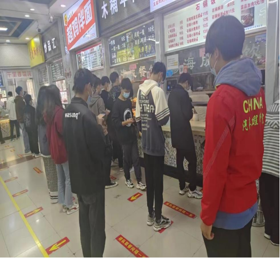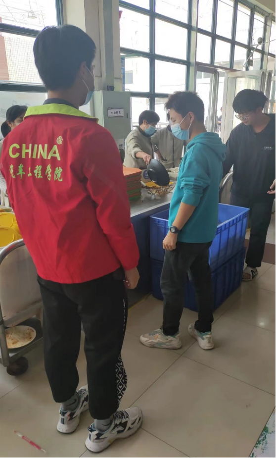 在活动期间,公司积极组织志愿者在餐厅教育引导同学们排队就餐,有序就餐,做讲文明、有素质、高水平的汽车学子。在就餐期间,志愿者耐心的引导大家,不要在餐厅随意大声喧哗,安静就餐,同时要珍惜资源,爱惜粮食,崇尚节约,文明就餐,并提醒同学们,饭后自觉的将餐具送回回收处,并及时将不可回收的垃圾扔在垃圾桶里,而不是随意丢弃。 同时,公司志愿者们身穿红马甲,与同学们一起排队买饭,用鲜艳的志愿红引领汽车学子之先锋模范,用实际行动展现汽车学子之精神面貌,以志愿精神唱响汽车学子之文明之歌。