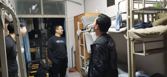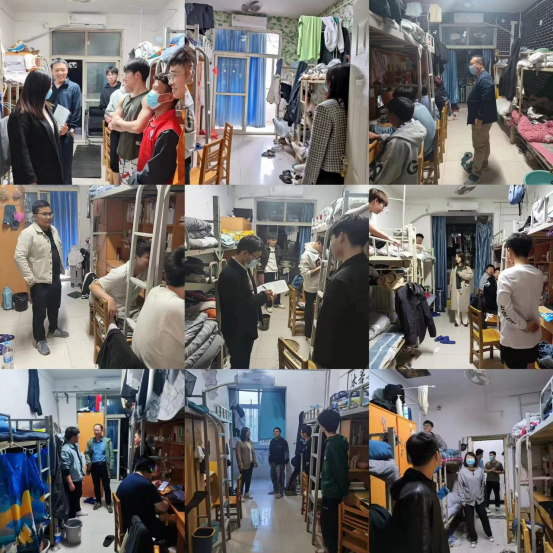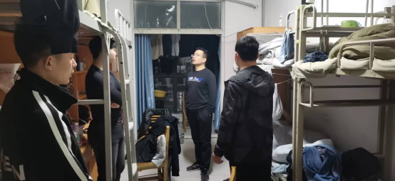 为进一步加强员工宿舍安全管理,给员工创造一个文明、安全、和谐的生活环境,让同学们树立良好的作息习惯,3月30日晚,根据院领导指示精神,公司党总支副书记夏连峰带领公司全体专兼职辅导员对员工开展了宿舍安全检查活动。