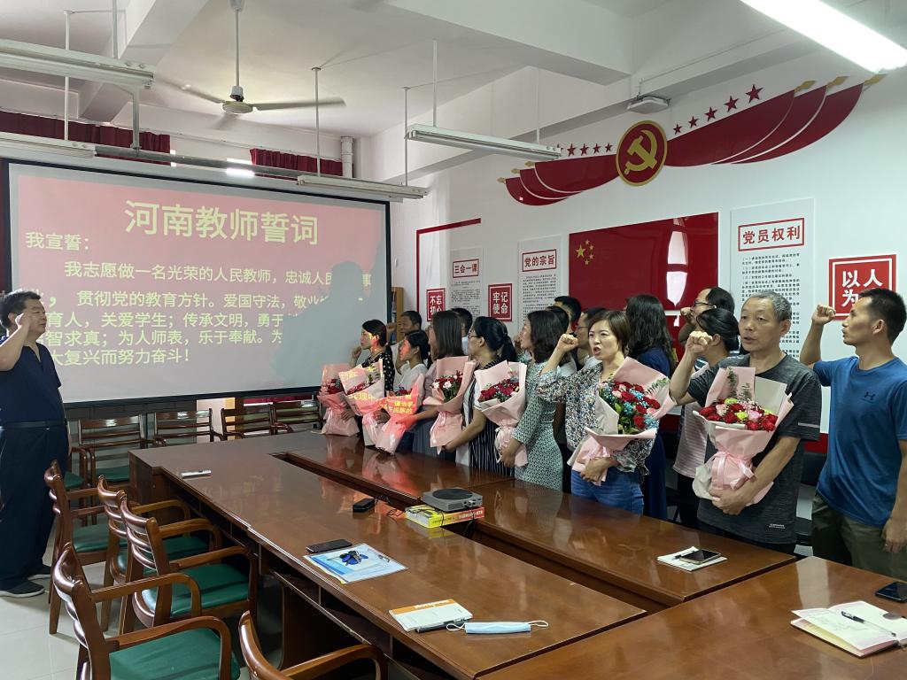 9月10日上午,在汽车实训楼507党员活动室汽车工程学院胡勇经理代领全院教师重温“河南教师誓词”,这一誓词是教师们对教育的庄严承诺,承载了老师们对教育的理解,也彰显着老师们不忘为师初心,牢记育人使命的教育情怀。