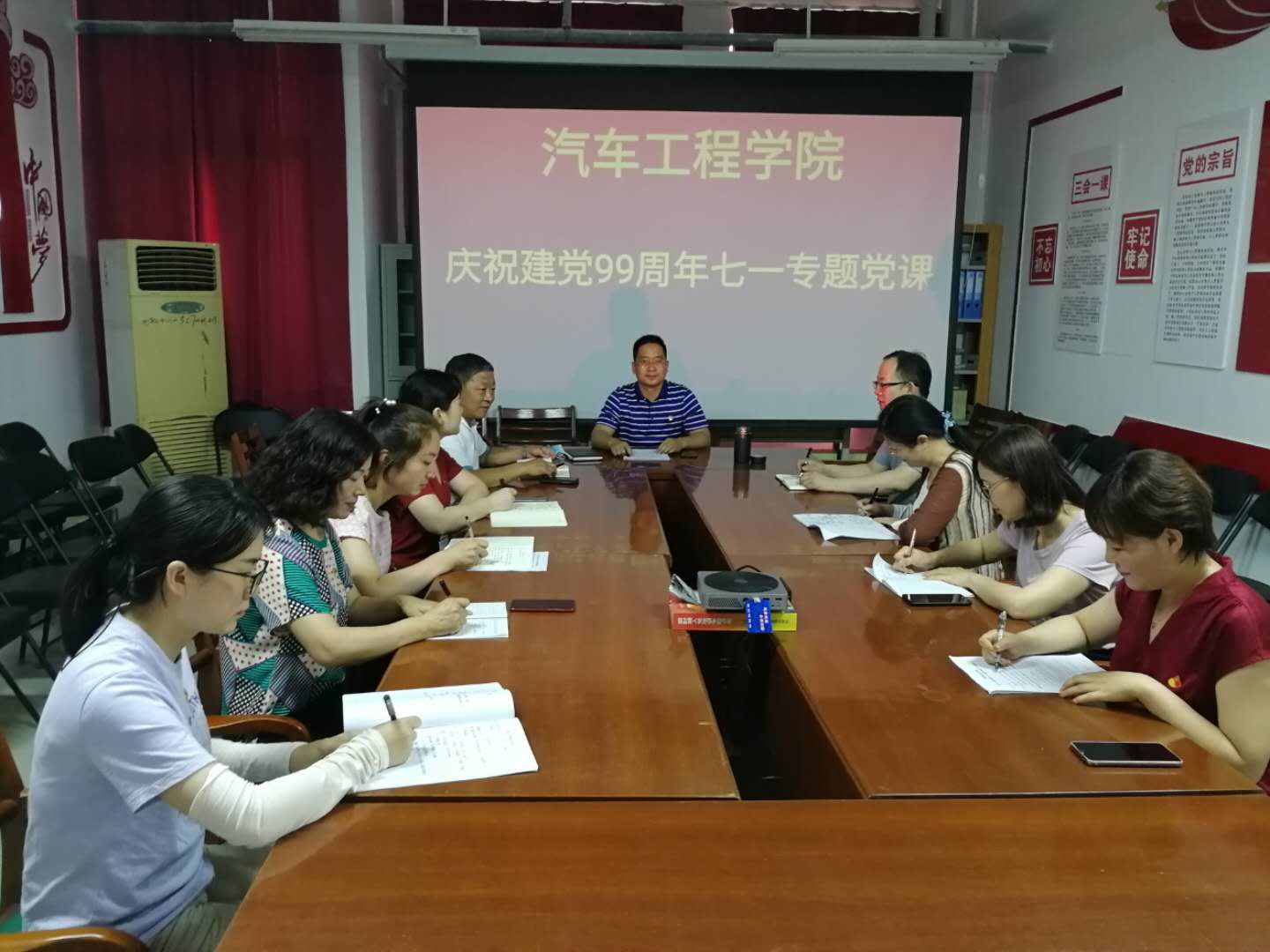 6月23日下午,汽车工程学院员工党支部组织全体教师党员在汽车实训楼507党员活动室开展纪念“建党99周年”主题党课活动。汽车工程公司党总支副书记夏连峰主讲题为《牢记党的初心使命 勇担立德树人任务》专题党课。