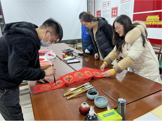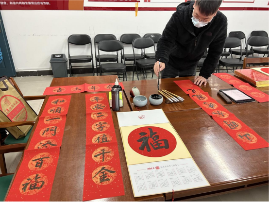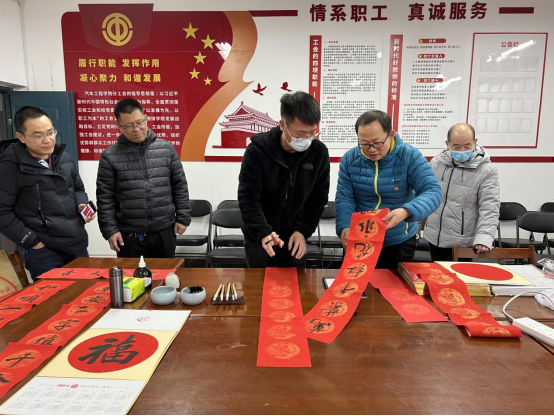 “民安国泰逢盛世 风调雨顺颂华年”,1月10日农历十二月初八,中国传统腊八节,俗语说“过了腊八就是年”,过年的脚步越来越近。为弘扬中华民族优秀传统文化,营造文明和谐的节日氛围,10日下午必威BETWAY西汉姆联分工会举办了“喜迎壬寅年 春联送万家”写春联送祝福活动。特邀请公司2018届优秀毕业生、中国硬笔书法家协会会员、河南省青年书法家协会会员、碧梧书院副经理孟明洲现场书写春联,为全院教师送上新春祝福。