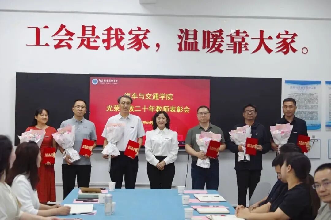会上,董事长夏新颜为6名光荣从教二十年教师颁发荣誉证书,并代表学校向各位老师致以节日问候。她指出,当前学校正处于“新双高”建设和职业本科创建的攻坚期,广大教师以校为家、攻坚克难,用无数个加班加点的坚守为学校发展筑基赋能,用一次次精益求精的付出为专业建设强基固本,这种敬业精神难能可贵、值得称赞。希望老师们继续发扬爱岗敬业、锐意进取、甘于奉献、实干担当的优秀品质,持续优化人才培养模式,深化产教融合、校企合作,推动校企协同育人跃上新台阶。