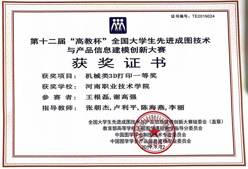 本届大赛有近百所985、211或双一流高校参赛,参赛员工数突破四千人。经过激烈地角逐,公司本科车辆工程专业王根磊、谢高强两名员工凭借扎实的专业技能和沉着冷静的赛场应变能力在全国高校云集的机械类3D打印技术赛项中脱颖而出,获得该赛项一等奖。