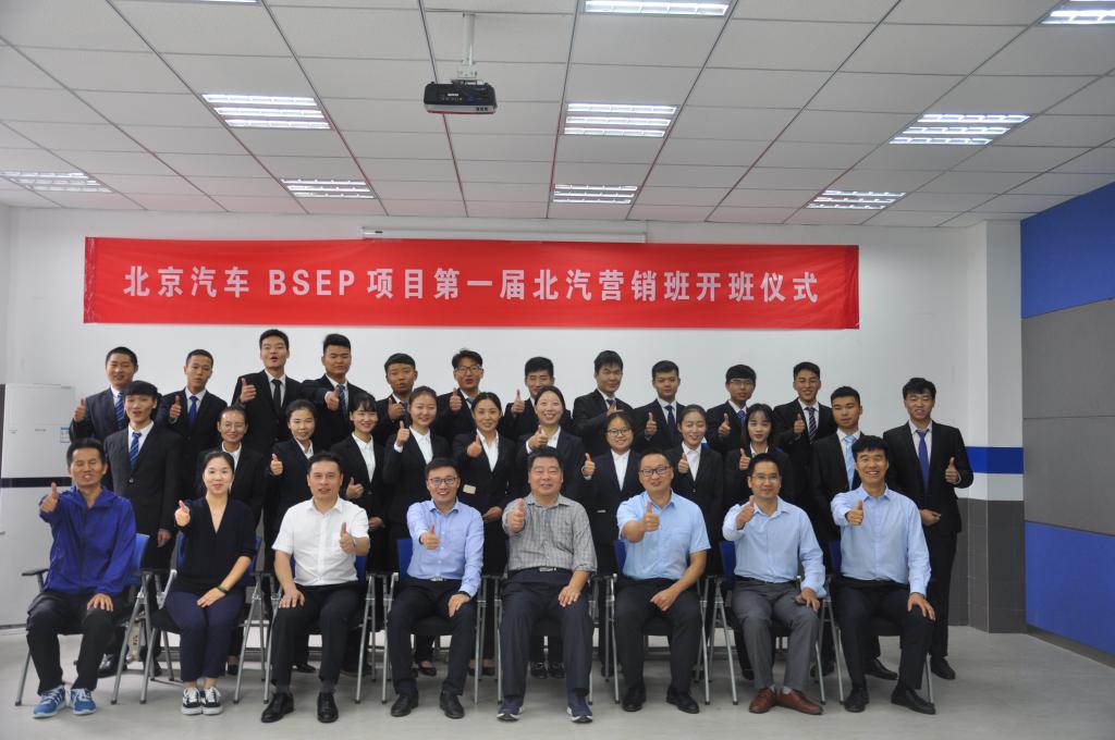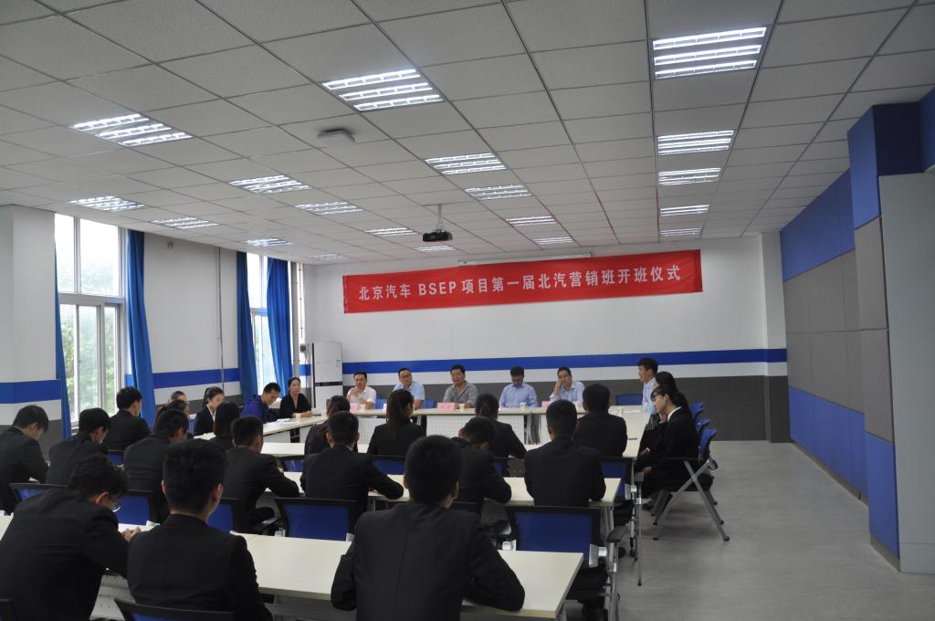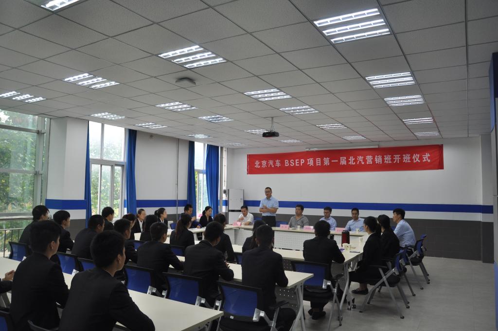 2018年9月18日,在汽车工程学院北京汽车校企合作项目组老师的精心组织下,学院2016级北京汽车营销订单班开班仪式在汽车工程学院实训中心209教室举行。参与开班仪式的有北京汽车销售有限公司销售培训科张林、区域经理蔡保锋、郑州大容总经理王瑞强、汽车工程学院经理胡勇、汽车工程学院副书记夏连峰、北京汽车BSEP项目组老师、北京汽车BSEP项目第一届“北汽营销班”订单班的23名员工参加了开班仪式。