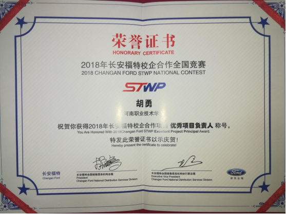 2018年,公司长安福特校企合作项目还一如既往地得到了长安福特有限公司和河南省各长安福特经销商的大力支持。