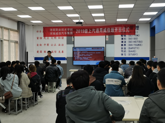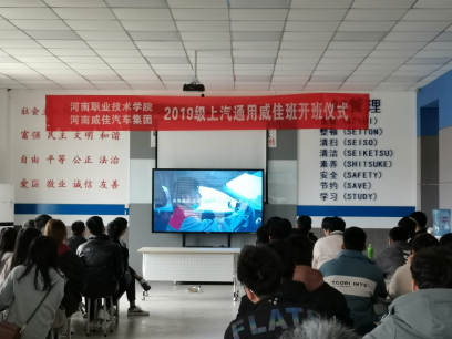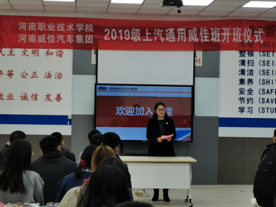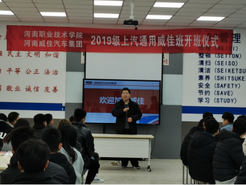 3月11日,公司隆重举办了2019级上汽通用威佳班开班仪式,汽车工程学院经理胡勇、项目负责人张朝杰、河南威佳汽车集团人事行政总监赵敏杰、人事经理王朝军等人出席了此次开班仪式。该项目班基于bw必威西汉姆联官网与上汽通用汽车、河南威佳汽车集团三方深度合作,共同培养汽车售后服务高技能人才。上汽通用汽车提供整车、发动机等教学用零部件和上汽通用经销商在线学习平台账号,河南威佳汽车集团派出技术总监和管理人员用于教学,公司同步采购270余万元教学设备。在人才培养的方案制定、实习、就业过程中,充分融入三方优势力量,使产教融合政策落实到课堂,