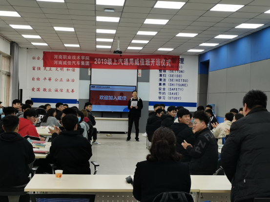 威佳人事经理王朝军经理向同学们介绍了威佳班课程《汽车职业素养》的内容和要求,并向同学们发放录取通知书。