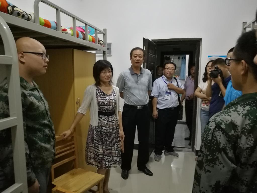 9月13日晚,在中秋佳节来临之际,李贵贞经理在学院院两办、学工部、团委等部门有关领导的陪同下来到我系高职和本科员工宿舍看望慰问我系2016级新生。