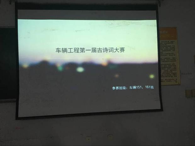为了丰富校园文化生活,全面推行素质教育的深入发展,我系于2017年5月25日晚上7:00在2107教室举办了本科班第一届古诗词大赛,参赛队员为车辆工程151班和161班全体同学,本次活动由汽车工程系员工会外联部部长崔再旺、库超前担任评委。