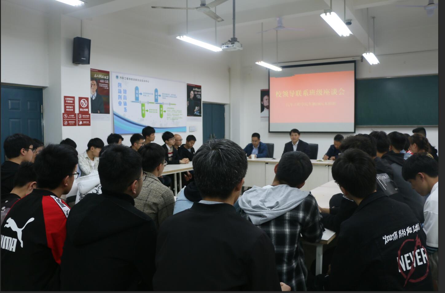 4月4日下午,汽车工程学院车辆1801班领导干部联系班级员工座谈会在汽车工程学院实训楼201教室举行。校工会主席夏喜利面对面与员工交流座谈,汽车工程公司党总支书记朱梦杰、副书记夏连峰、辅导员尹霞老师及车辆工程1801班全体同学参加了班级座谈会。