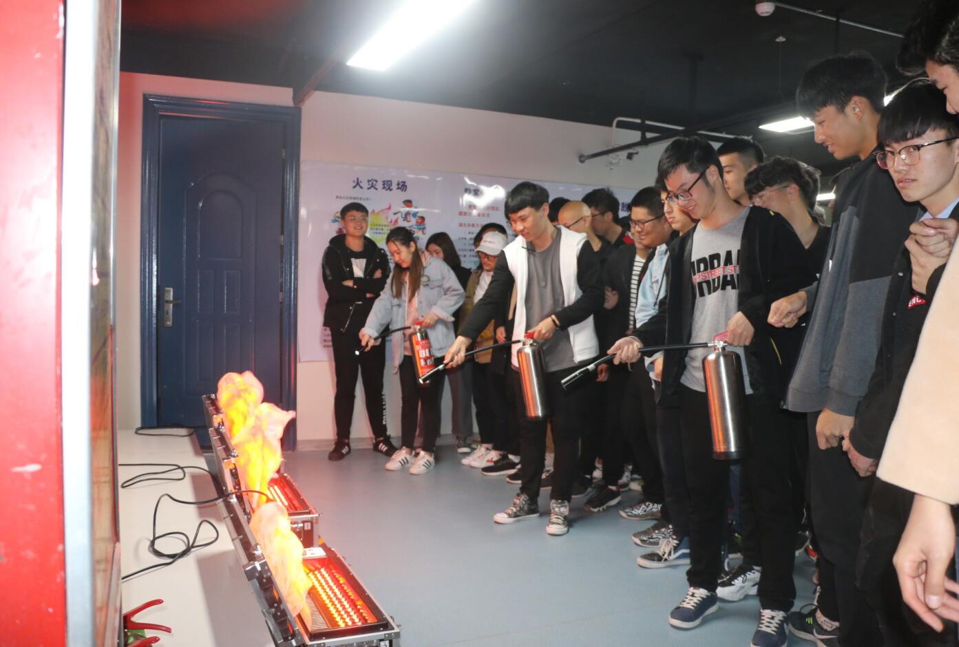 在安全体验中,我们按照预定方案进行活动,在安全讲解员的带领下分别对国家安全、交通安全、各种消防安全、防范传销、手机诈骗等进行讲解并让员工进行安全体验。同学们认真学习了各种消防器材的种类、性能、适应火种及操作要领现场示范操作,并进行了实际操作体验。最后进行了“模拟火情”演练、员工应急逃生(员工在负责安全教师的指导下,用湿毛巾捂住口、鼻)演练;整个演练过程组织有序,撤离迅速,紧张而不慌乱,共用3分9秒,取得了良好的安全教育效果。