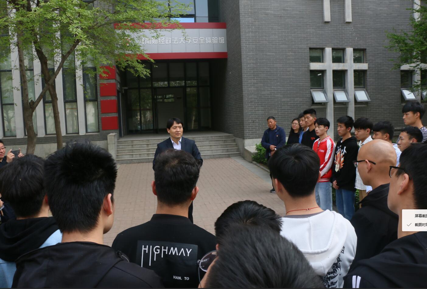 本次讲座夏主席从国家安全、消防安全、交通安全、食品安全、防范传销和各种宗教势力渗透等几个方面,理论知识结合实际案例给员工进行详细深入的讲解。讲座结束之后,夏主席带领1801班全体同学到河南财经政法大学安全体验馆进行了安全体验。