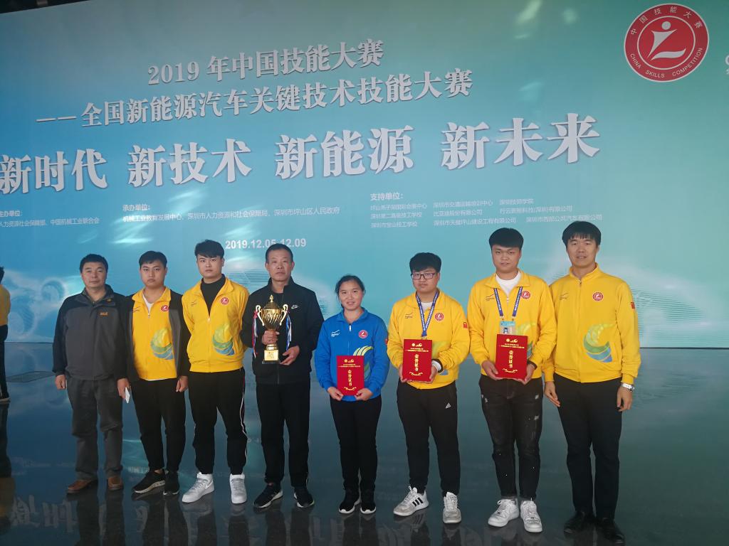 人力资源和社会保障部主办的2019年中国技能大赛—全国新能源汽车关键技术技能大赛,于2019年12月3日至8日在深圳举行,来自全国28个省、自治区、直辖市246支代表队参加了全国决赛。经过激烈角逐,公司汽车工程学院获得一等奖1项,二等奖两项。其中,李文琦、刘佳雨在新能源汽车智能化技术赛项员工组决赛中荣获一等奖,获得技师职业资格,李丽老师荣获优秀教练荣誉称号。高云、韩建国老师和员工乔晓阳、陈国严在新能源汽车电控技术赛项教师组、员工组决赛中,双双荣获二等奖。