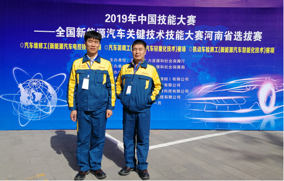 高云等四名教师在2019年11月7日至10日,参加了由河南省人力资源和社会保障厅主办的2019年中国技能大赛--全国新能源汽车关键技术技能大赛河南省选拔赛职工组“新能源汽车电控技术”和“新能源汽车智能化技术”两个赛项的比赛,经过激烈角逐,分别获得了职工组:“新能源汽车电控技术”赛项河南省第二名和“新能源汽车智能化技术”赛项河南省第三名的优异成绩。