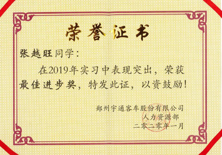 在企业的的学习过程中,同学们严格遵守企业的各项规章管理制度,感受了宇通深厚的企业文化,发扬了不怕苦、不怕累,勇于拼搏奉献的精神。并且能够将在学校所学的理论知识和企业的实际生产相结合,融会贯通、活学活用、受益匪浅。其中:苏康、满宁、张越旺、聂玮宏、王义博、罗昀等6名同学表现突出,分别被授予“协同之星”和“最佳进步”奖。房雷老师被授予“倾情奉献奖”荣誉称号。