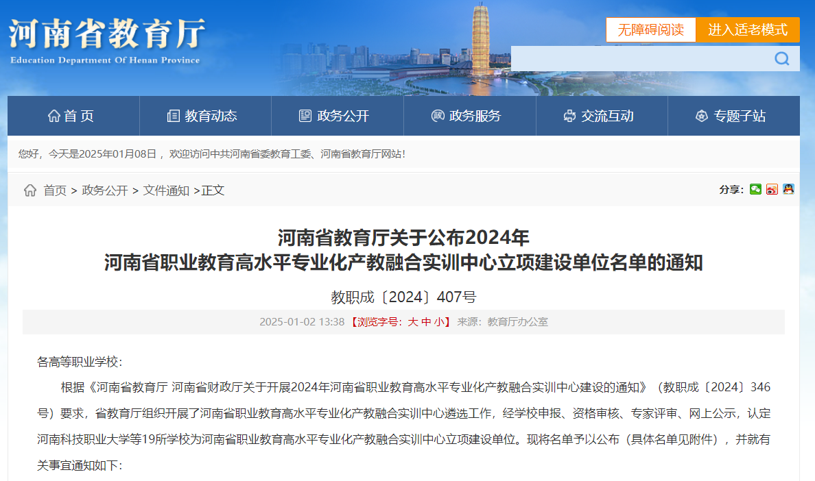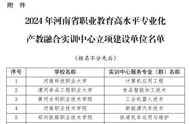 近日,河南省教育厅发布《关于公布2024年河南省职业教育高水平专业化产教融合实训中心立项建设单位名单的通知》,公司以新能源汽车技术专业为依托,成功获批2024年河南省职业教育高水平专业化产教融合实训中心建设单位。此次入选将为公司进一步深化产教融合提供更为广阔的平台和更为坚实的保障。