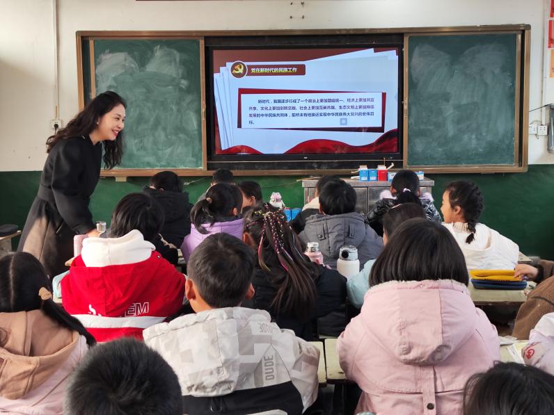 活动当天,房静为员工们宣讲了党的二十届三中全会精神,并且向同学们赠送了学习用品,对他们致以新春的祝福,勉励同学们要传承红色基因,胸怀崇高理想。工作室成员王晓毅为四二班、六五班员工开展了以“新时代中华民族共同体建设”为主题的理论宣讲活动,活动现场,同学们认真听讲、踊跃回答,对于党的创新理论成果有了更加深刻的认识,理论宣讲活动取得了良好效果。