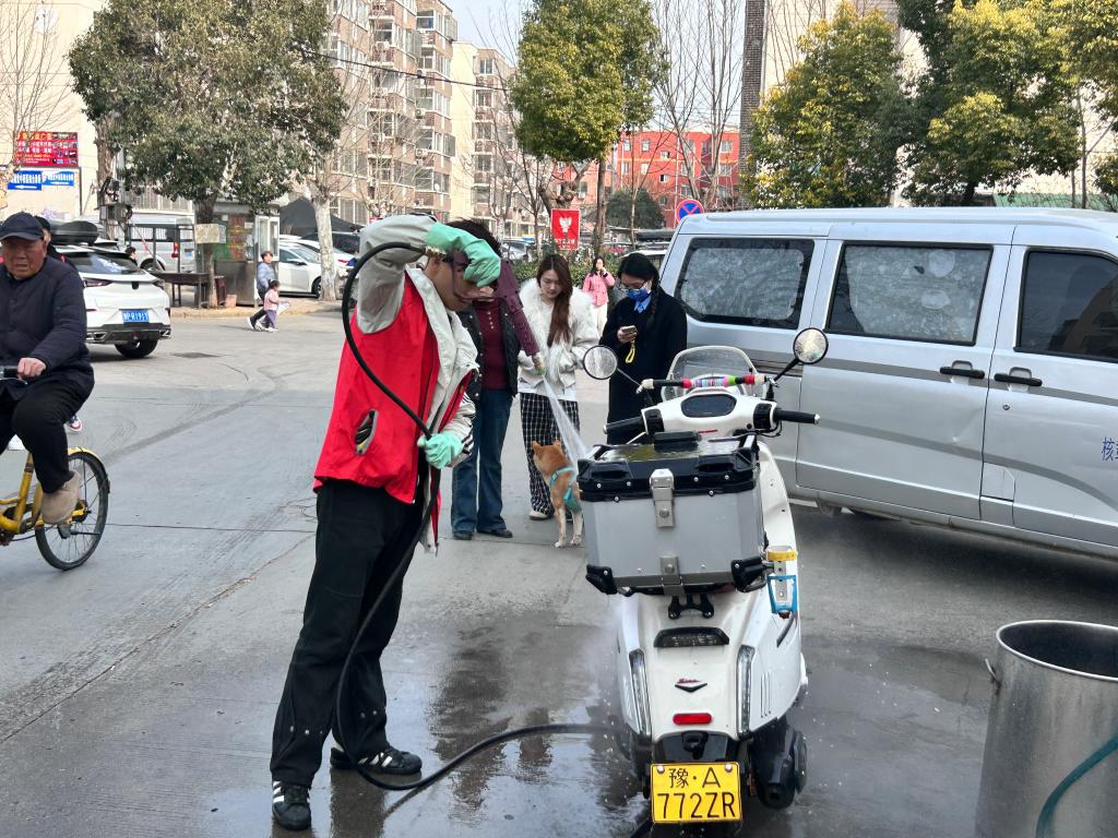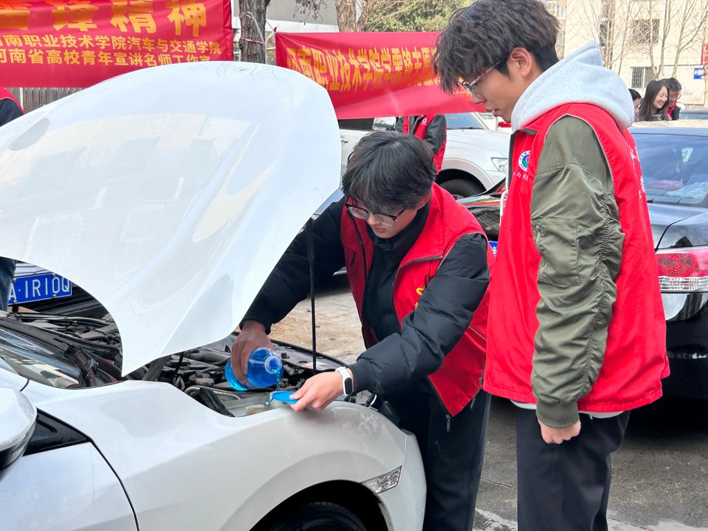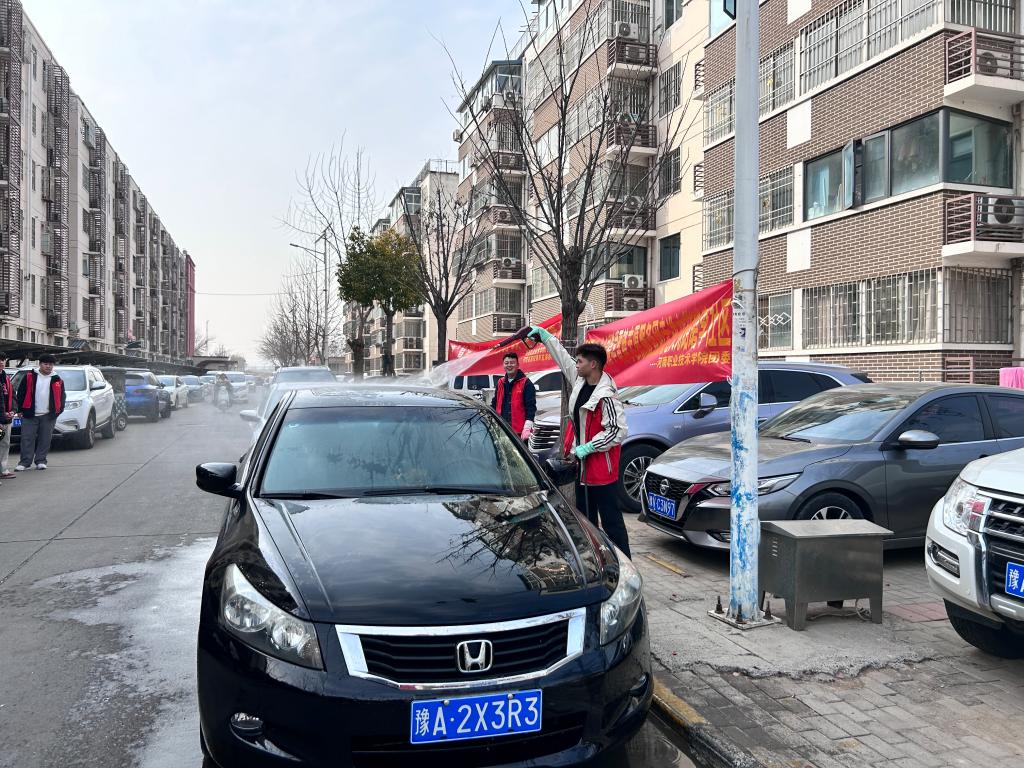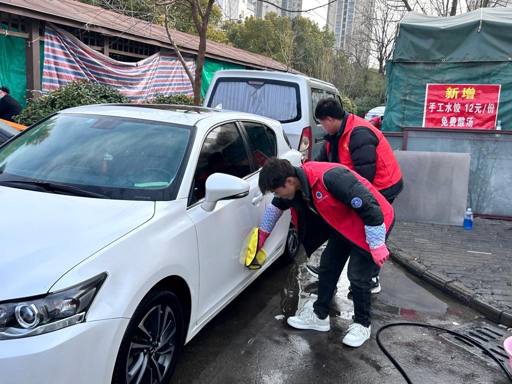 本次志愿服务活动围绕“车辆美容保养”与“安全知识宣讲”两大主题,充分发挥学院专业优势,为社区居民送上了实实在在的暖心服务。活动现场,志愿者们迅速行动,充分利用社区便民设施,搭建起临时服务站点。他们身穿统一的志愿者服装,手持洗车工具,义务洗车、免费添加玻璃水,以点滴行动续写雷锋故事。
