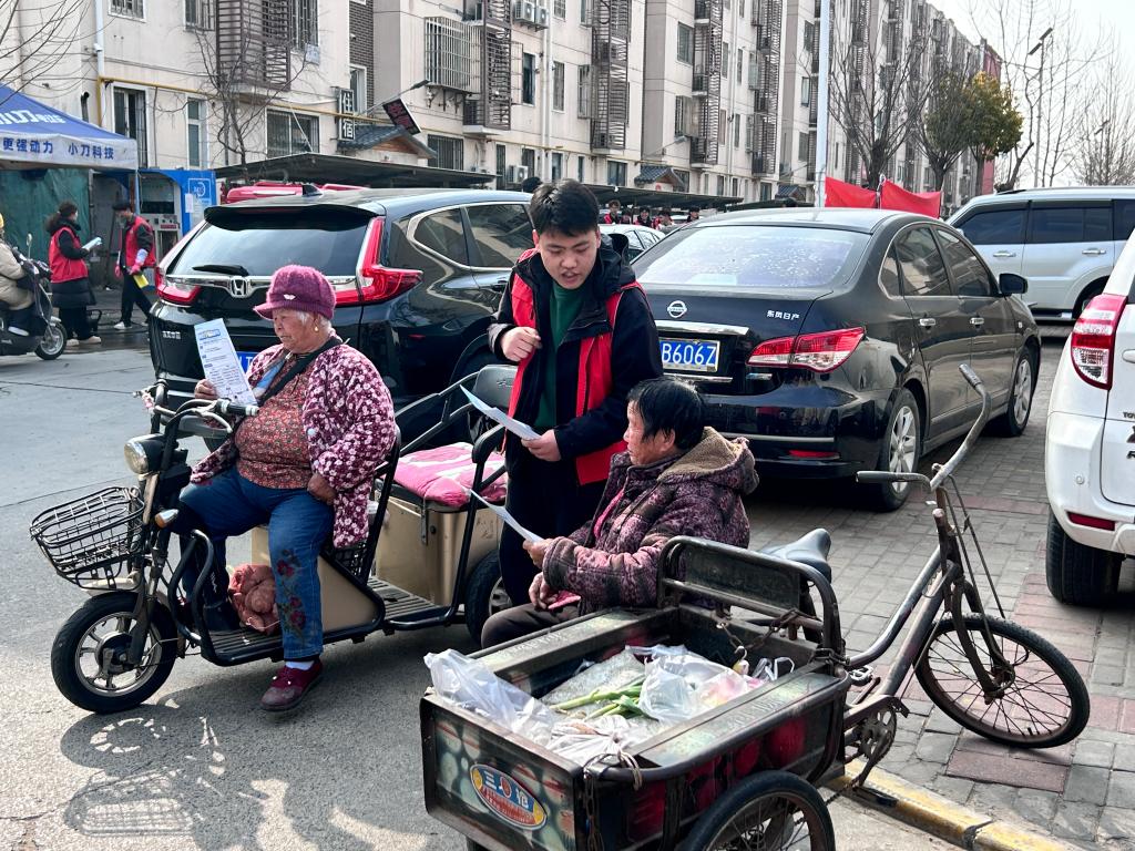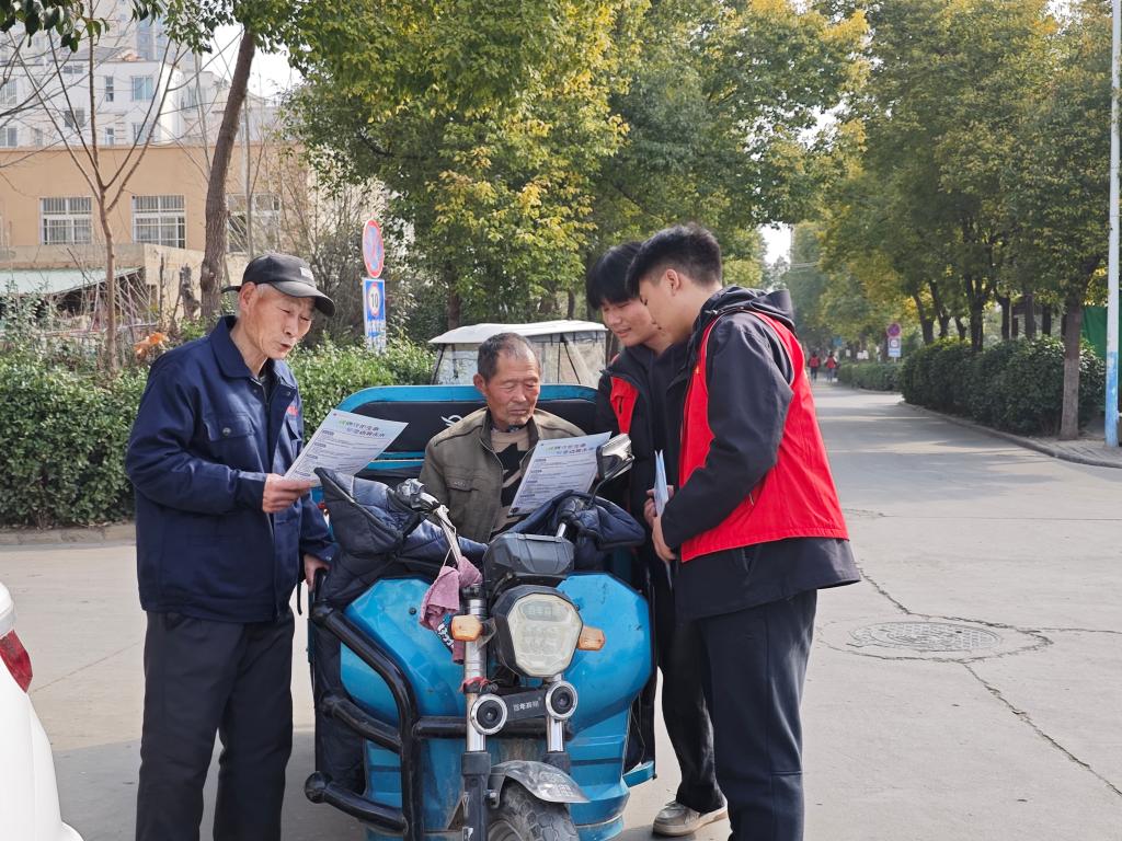 同时,志愿者们还精心准备了内容丰富、图文并茂的宣传册,内容涵盖了反诈防骗和交通安全知识。他们分组行动,穿梭在社区居民之间,热情地向大家发放宣传册,并结合当下常见的诈骗案例,深入浅出地为居民们宣讲防诈要点。针对老年群体,更是进行一对一耐心提醒,帮助他们提高警惕,谨防诈骗,守护好财产安全。同时,志愿者们还结合专业知识,通过讲述身边真实的交通事故案例,生动阐述了交通安全的重要性,引导居民自觉遵守交通规则,共同营造安全、和谐的交通环境。