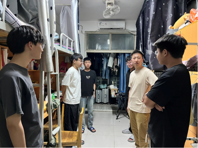 本次走访聚焦员工假期后生心理状态调适、用电安全及作息规律引导等关键方面。走访中,老师们亲切询问同学们的假期生活与返校感受,耐心倾听员工心声。同时,温馨提醒同学们及时整理内务,保持宿舍整洁卫生;严格遵守宿舍各项安全管理规定,尤其针对夏季用电高峰期,着重强调电风扇等电器的规范使用,严谨私拉乱接电线,消除用电隐患。