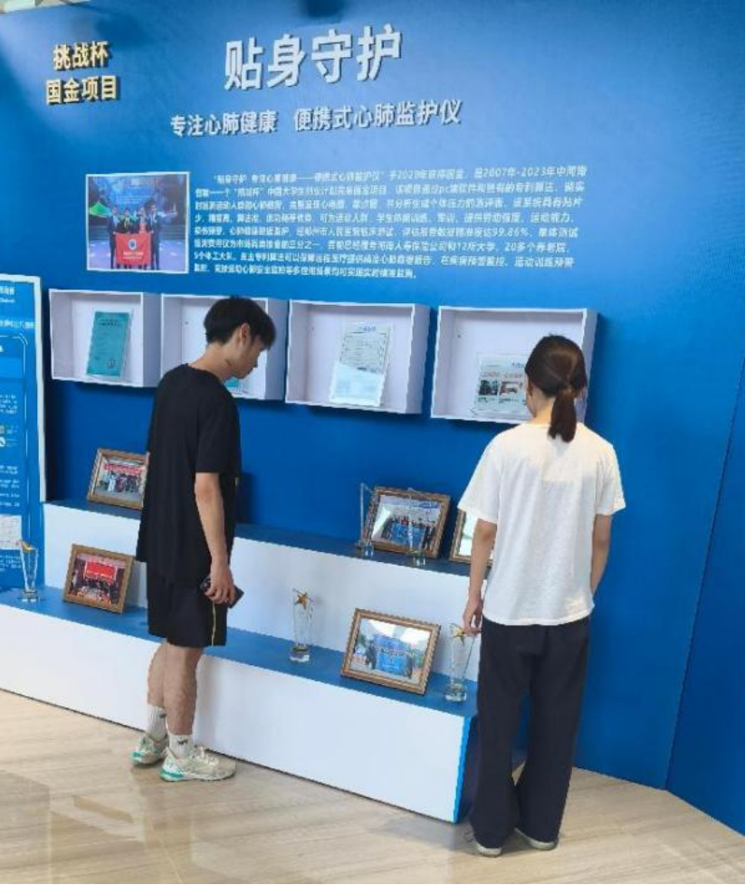 步入展厅,隐私安全设备、实训教学设备等数十项创新成果琳琅满目。其中,员工团队自主研发的“公共区域非法摄像头精准检测系统”凭借Wi-Fi协议创新技术斩获第十四届“挑战杯”国赛金奖,其技术突破引发同学们热烈讨论;2022年金奖作品“声临其境—打造中国高端量产电子管音响轻奢品牌”美学、科技、音质齐驱,满足年轻群体全方位音频需求,同学们争相体验赞叹不已。活动尾声,同学们深受触动,纷纷表示此次沉浸式参观不仅拓宽了职业认知视野,更激发了对专业实践的热情。