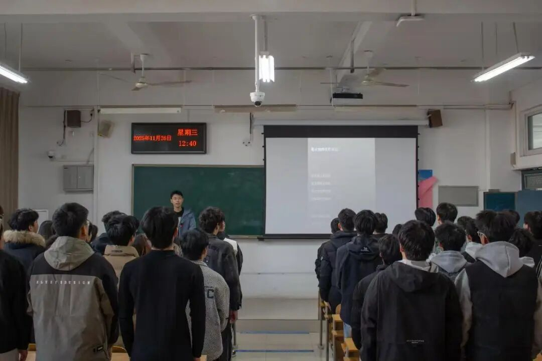 活动初始,辅导员秦梧桐向全体员工提出了一个值得深入思考的问题——“何为宪法”,引发同学们深度思索。随后,他带领员工了解宪法的定义以及宪法的精神内涵,为宪法传唱奠定思想认知根基与情感认同底色。在“宪法传唱”环节,秦梧桐带领员工学唱其原创歌曲《法治明天》,歌曲旋律激昂澎湃、歌词铿锵有力,既契合宪法主题,又贴近校园生活,赢得了同学们的一致赞许。在老师的引领下,同学们开展了专业的发声技巧训练,以嘹亮的歌声生动展现了宪法精神与核心要义,表达了对宪法的尊崇、对法治的信念以及对祖国的热爱。现场气氛热烈,激昂向上的宪法歌曲在校园上空回荡,形成了尊法学法守法用法的强大共鸣。