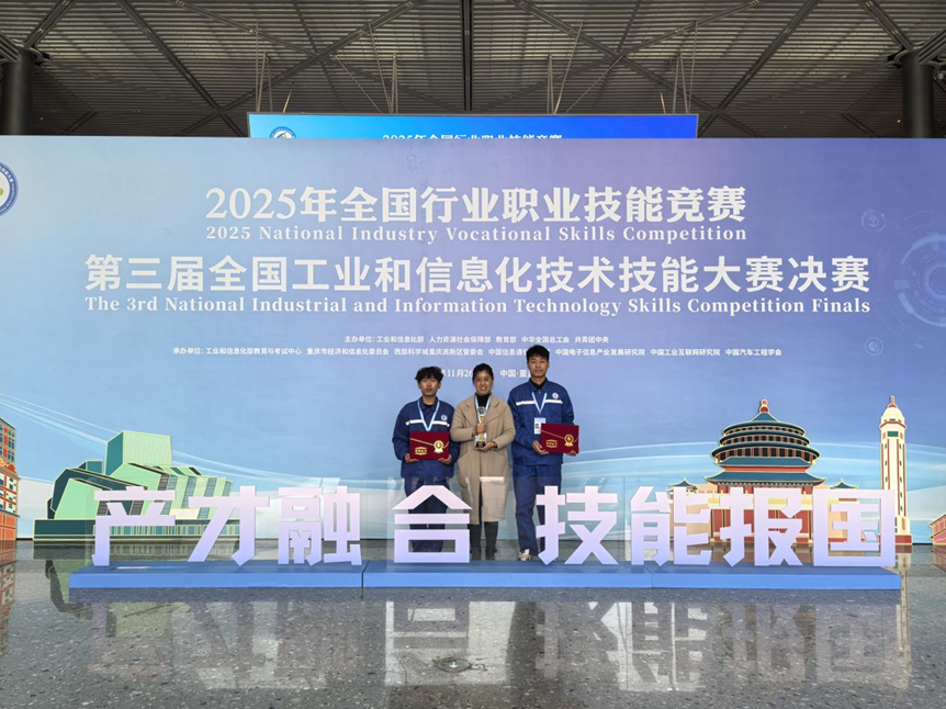 11月28日,由工业和信息化部、人力资源社会保障部、教育部、中华全国总工会、共青团中央联合主办的“2025年全国行业职业技能竞赛——第三届全国工业和信息化技术技能大赛”在重庆科学会堂圆满落幕。必威BETWAY西汉姆联智能网联汽车技术专业学子刘春雨、谷永科凭借扎实的专业功底、娴熟的实操技能和默契的团队协作,在激烈角逐中脱颖而出,斩获“智能硬件装调员”赛项全国二等奖。
