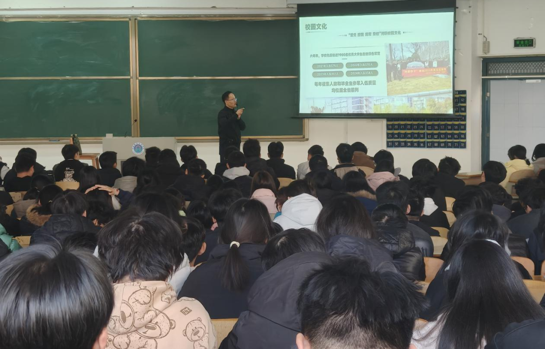 宣讲过程中,康培儒紧扣老员工征兵工作重点,从征兵基本条件、网上报名流程、服役期间优抚待遇,到退役后升学就业优惠政策等方面进行全面解读,着重阐述国家对老员工士兵在学业、就业等方面的专项扶持举措,帮助同学们清晰地了解参军入伍的各项保障。刘明库以“青春赴戎装,准备正当时”为主题,强调应征青年需同步做好思想淬炼与体能准备,并结合学院入伍员工扎根军营、建功立业的鲜活案例,生动展现军旅生涯对青年意志品质与综合能力的磨砺塑造作用。焦俊鹏则结合自身经历,深情讲述从校园学子到合格军人的蜕变历程,分享部队训练生活的艰辛与收获、战友情谊的温暖与力量,以亲身感悟鼓励在场同学们响应祖国号召,在青春守护家国的征程中绽放光彩。