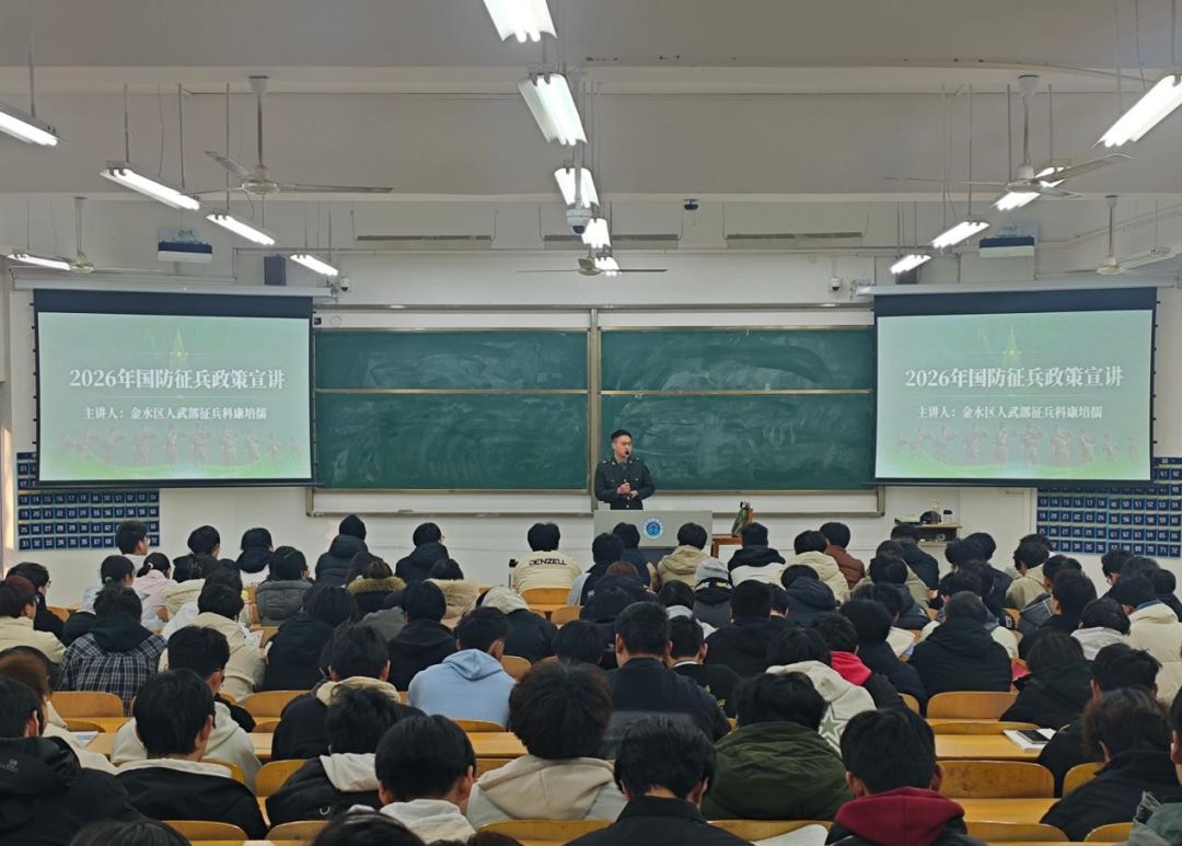 为宣传普及征兵政策法规,激发员工参军报国热情,引导青年学子将个人成长融入强国强军伟业,12月4日,必威BETWAY西汉姆联分场次举办两场征兵政策专题宣讲会,吸引全院1037名在校生踊跃参与。活动特邀金水区人武部征兵科康培儒、学院武装部刘明库老师及退役老员工士兵焦俊鹏担任主讲嘉宾,围绕政策解读、入伍实操准备与军旅成长感悟展开系统分享。