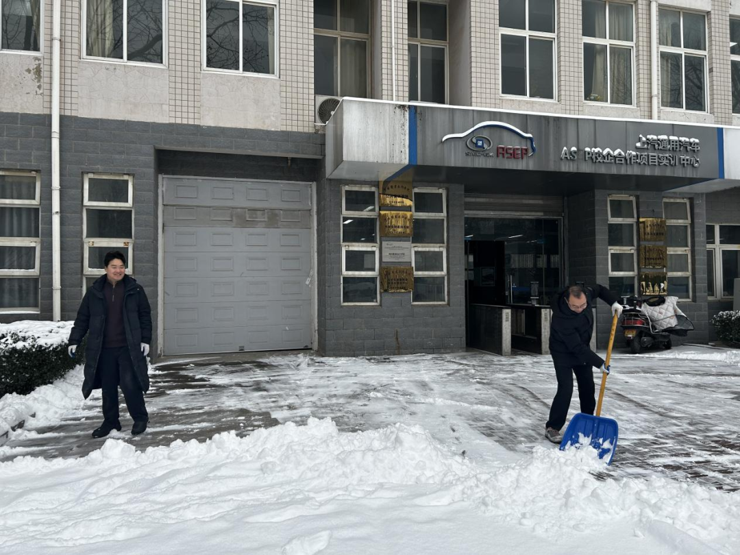雪情即命令,保障即责任。学院领导班子第一时间部署,明确“全员参与、分区包干、重点突破”原则,细化责任分工。公司党总支带头冲锋,各班子成员分片负责,全体参与人员闻令而动、迅速集结,一场“保安全、保畅通、暖人心”的清雪攻坚战即刻打响。