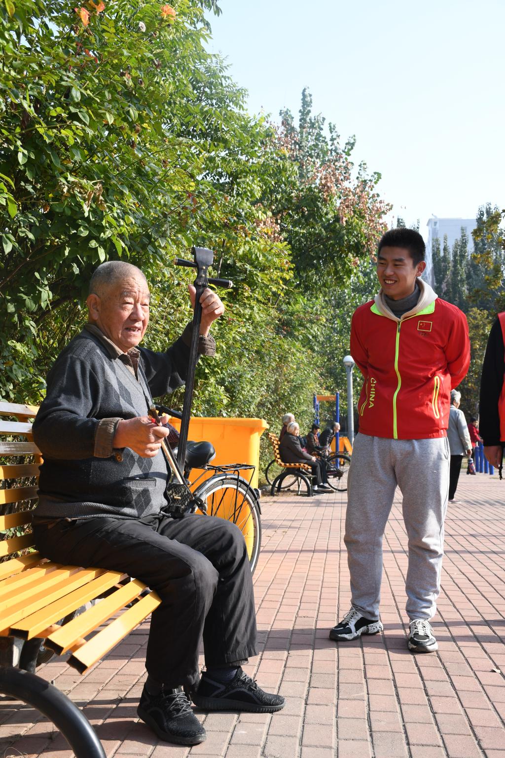 青年志愿者们在社区游乐场陪老人下象棋、弹奏二胡、教老年人使用智能手机。用温暖的笑容和耐心的陪伴更好的诠释了尊老、爱老的精神。志愿活动持续3个小时,同学们的服务给老人带来了欢乐与温暖。
