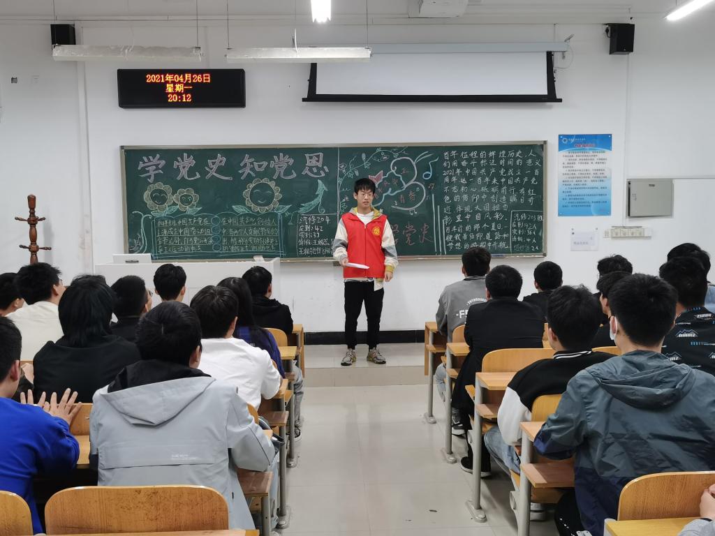 2021年4月26日汽车工程学院召开了“青春心向党,党史我来讲”志愿服务活动。百年党史,处处蕴含着治国理政的经验智慧、资政育人的宝贵财富、催人奋进的强大力量。为深入贯彻落实习近平总书记在党史学习教育动员大会上的重要讲话精神,切实加强基层党建,同时充分发挥基层党组织战斗堡垒和员工党员先锋模范作用,公司20名员工预备党员、入党积极分子走进各团支部开展党史宣讲志愿活动。