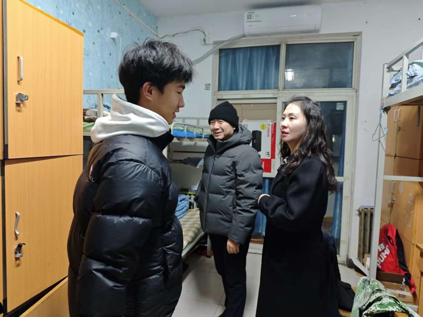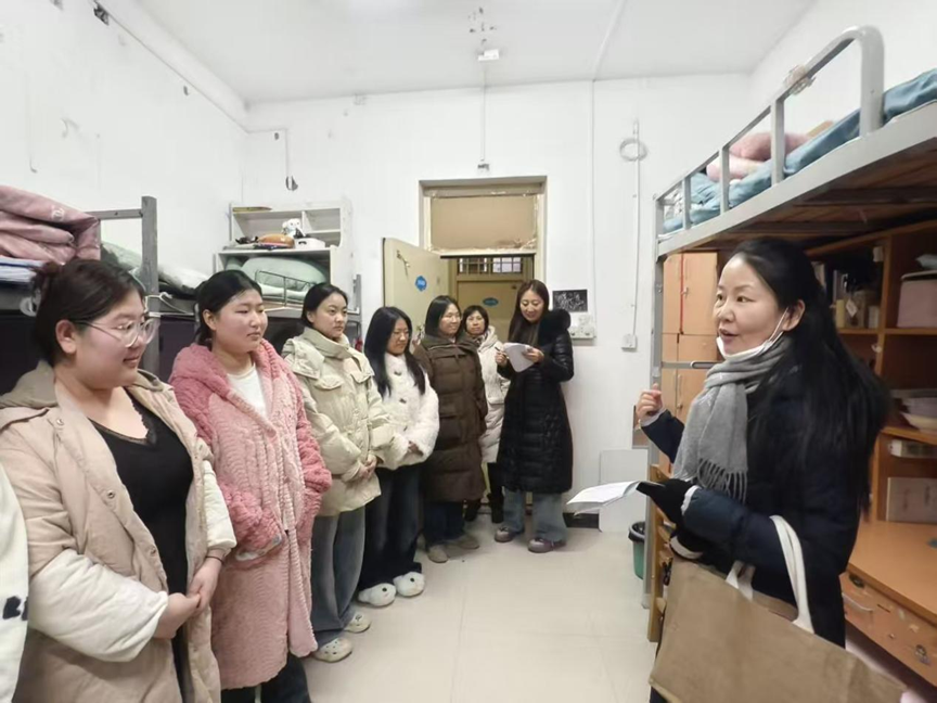 在排查安全隐患的同时,学院领导与老师们深入宿舍一线,与同学们开展面对面交流,细致了解大家近期在学习、生活、心理及宿舍关系等方面的情况,尤其对可能面临学业压力、情感困扰或宿舍矛盾的同学进行了重点关怀与疏导,将关怀帮扶落到实处。