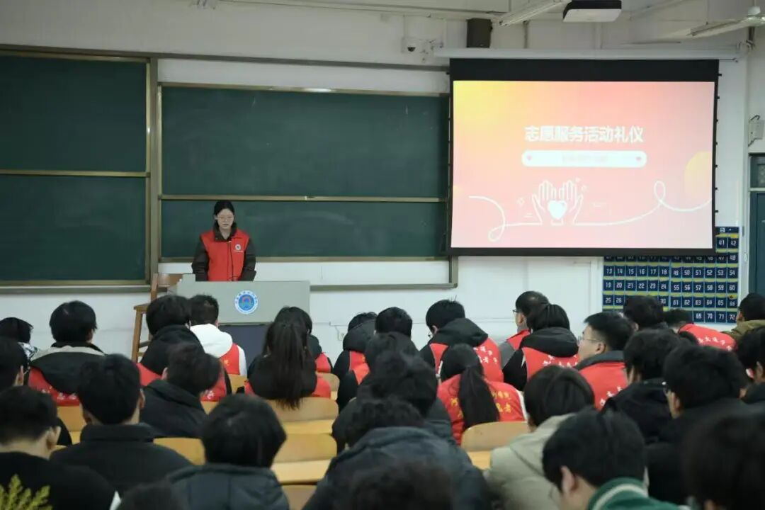 员工代表徐丰姣结合自身实践经验,分享了志愿服务中的礼仪规范、高效沟通技巧及突发情况应急处理方法,为同学们后续高效有序开展实践活动筑牢基础、指明方向。