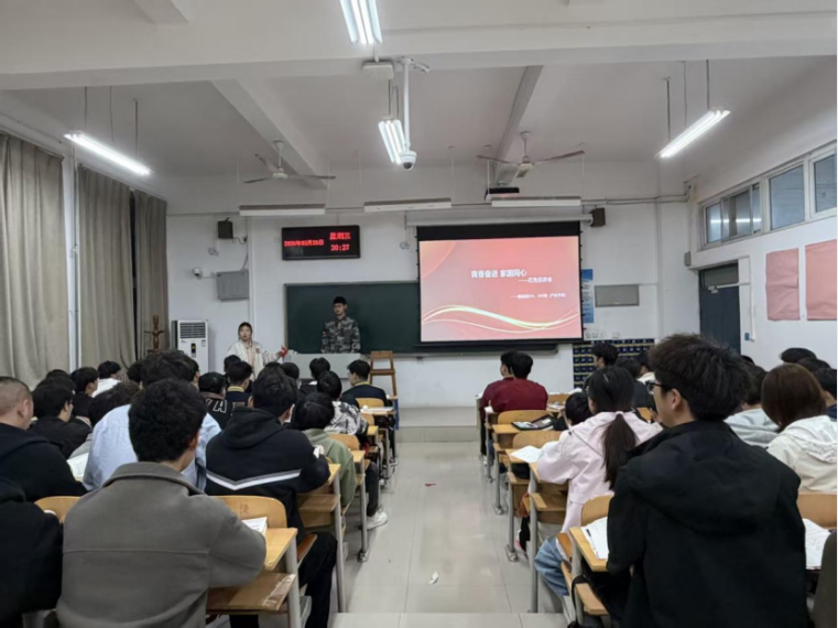 “青春奋进·家国同心”红色宣讲会上,学院邀请退役老员工士兵走进社区活动室,结合军旅经历讲述军营故事、国防知识与家国情怀,用真实经历感染在场每一位同学。辅导员围绕青春与担当、国防与使命展开引导交流,同学们在聆听中感悟精神力量,在互动中强化爱国意识,进一步坚定了报效祖国、服务社会的理想信念。
