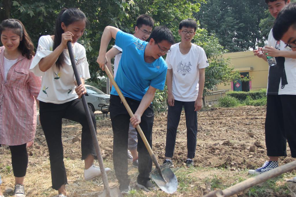 跟老人接触结束后,同学们很快便投入到敬老院的菜地里面,听从菜园大爷的指挥,先锄地,再种上同学们为敬老院带来的菜种。尽管天气炎热但同学们却热情不减,姚老师更是身先士卒,拿起铁锹带头干,同学们深受鼓舞,大家越干越快乐,在阳光下尽情挥洒着汗水,圆满完成种菜任务。