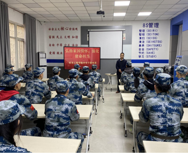 为培养员工树立起家国情怀和正直品格的理念,增强员工干部责任意识、大局意识、服务意识,提高员工干部的组织管理能力、团队合作能力,加强员工会干部队伍的凝聚力、战斗力,提高员工会干部的整体素质,使其在员工自主管理中发挥更大的作用,11月20日至21日,公司于实训楼101教室举行员工干部培训会,此次活动由团总支张洁老师主持,公司党总支副书记夏连峰为员工干部做了开班动员,光年与火影教官带队训练,汽车工程学院员工会干部、各班团支部书记、班长参与。