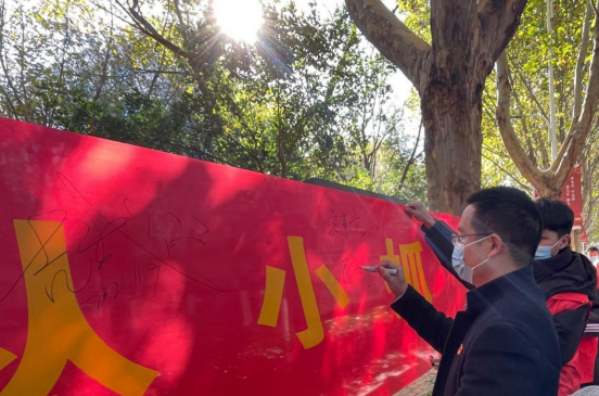 活动伊始,公司员工会宣传部部长黄晓江带领同学们对本次活动所准备的“板报”和“海报”内容进行简单介绍,随后组织公司员工积极学习,提高大家的消防安全意识。伴随着学院领导的到来,宋东方书记、吉武俊经理和夏连峰副书记跟同学们强调消防安全重要性讲话,并号召响应消防安全月活动的通知,在日常学习和生活中注意消防安全,同时号召大家在“安全消防从小抓 幸福围绕千万家”和“掌握消防知识 杜绝火灾隐患”两个条幅上签名,要求同学们郑重承诺自己将牢记消防安全知识,提高消防安全防范意识,杜绝火灾隐患,从自身做起,从身边小事做起,以身作则,为学院消防安全贡献自己的力量。
