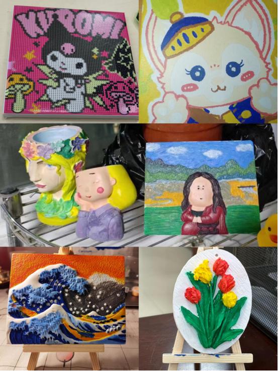 本次活动共为大家提供了三种DIY绘画形式:数字油画、数字点钻粘贴画、石膏板油画,参与活动的师生们可以充分发挥个人特长,选择自己擅长及感兴趣的形式进行创作。本次活动主要面向女教师及女员工,但是活动本身的趣味性及现场欢乐的气氛吸引了许多男同学前来参加,并在绘画创作过程中展现出了属于他们的独特灵感。