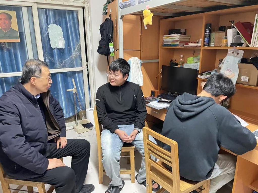 行至家庭经济困难员工宿舍,他深入了解员工日常开销、家庭负担等生活状况,并详细解读学校资助政策,确保每一位困难员工知悉申请流程、帮扶细节,让资助精准到位,助力员工安心学习。